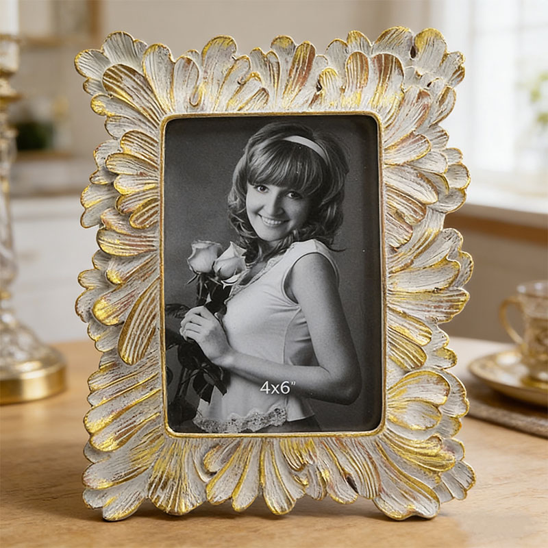 Αυτή η κορνίζα φωτογραφιών είναι χειροποίητη από ρητίνη σε ευρωπαϊκό vintage στυλΔιαθέτει σχήμα περιγράμματος από στρωματοποιημένα και απλωμένα πέταλα. Μέσω του συνδυασμού ενός παλαιωμένου λευκού φόντου και τεχνικών ζωγραφικής σε χρυσό, παρουσιάζει μια ανάλαφρη και πολυτελή ρετρό εμφάνιση. Είναι κατάλληλο για φωτογραφίες 4×6 ιντσών και μπορεί να τοποθετηθεί σε γραφεία ή μπουντουάρ ως διακόσμηση. Μπορεί επίσης να χρησιμοποιηθεί ως ένα εξαιρετικό δώρο για γάμους, μετακομίσεις ή επετείους, προσθέτοντας μια ρομαντική αίσθηση τελετής στη ζωή.