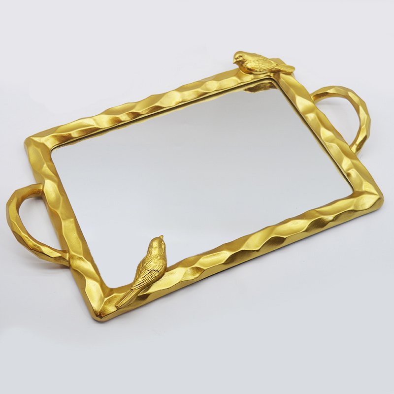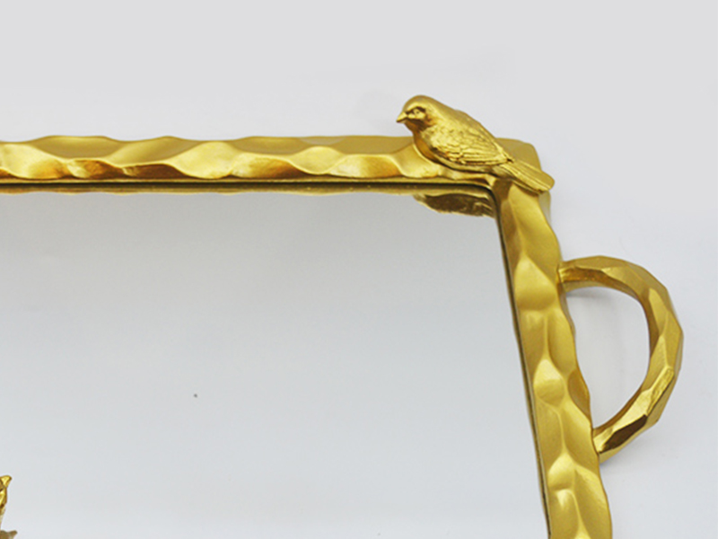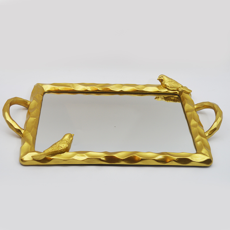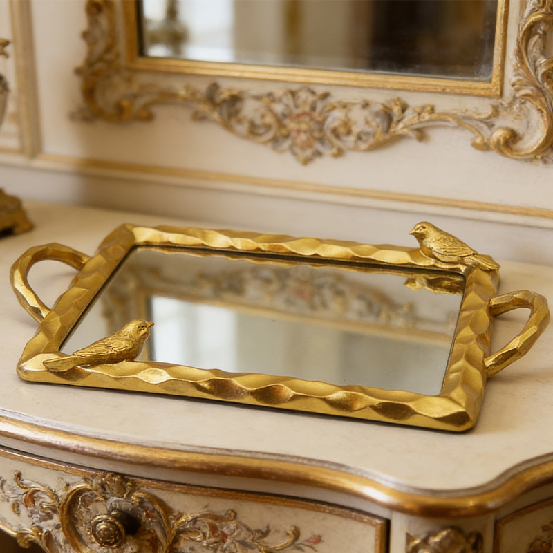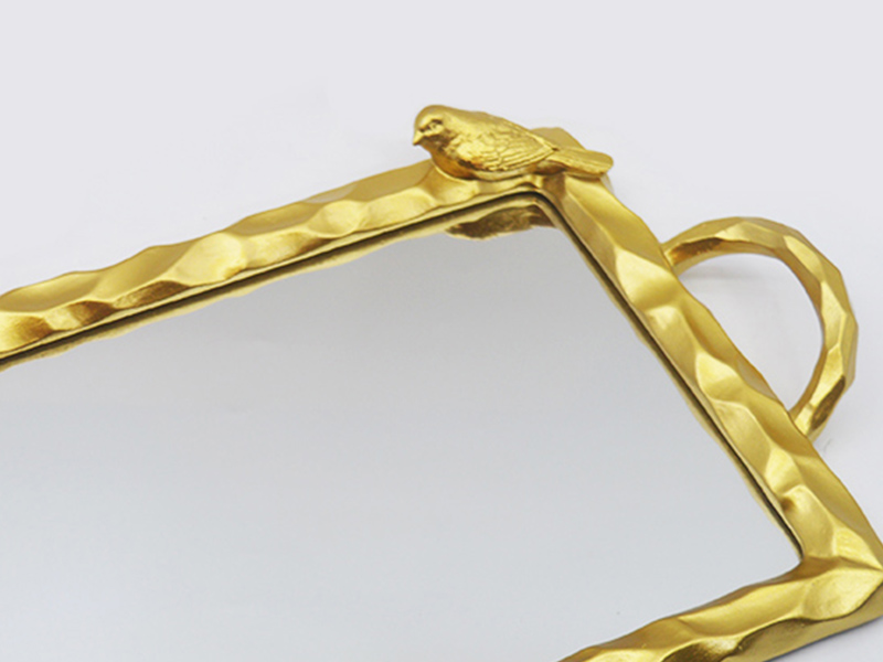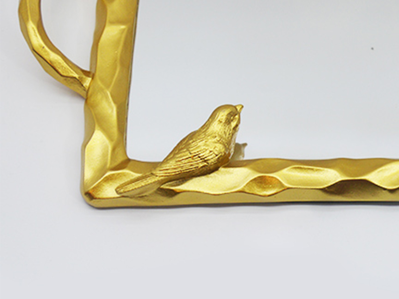 Αυτός ο μικρός δίσκος ρητίνης για πουλιά είναι κατασκευασμένος από ρητίνη υψηλής ποιότητας ως βασικό υλικόΗ επιφάνειά του έχει υποστεί επιχρυσωμένη επεξεργασία. Το πλαίσιο έχει σχεδιαστεί με υφή σφυριού και είναι διακοσμημένο με τρισδιάστατο ανάγλυφο πουλιού. Είναι ταυτόχρονα ζωντανό και κομψό. Ο εσωτερικός πυρήνας του δίσκου είναι ενσωματωμένος με επιφάνεια καθρέφτη υψηλής ευκρίνειας, η οποία συνδυάζει ανακλαστικό διακοσμητικό εφέ και πρακτικότητα αποθήκευσης. Ο σχεδιασμός με διπλή λαβή διευκολύνει το κράτημα. Είτε χρησιμοποιείται για την αποθήκευση κλειδιών και κοσμημάτων στην είσοδο, είτε για την τοποθέτηση προϊόντων μακιγιάζ στο μπουντουάρ, είτε για την τοποθέτηση αρωματικών σετ τσαγιού στο τραπεζάκι του σαλονιού, μπορεί να επιτύχει τη λειτουργία αποθήκευσης προσθέτοντας παράλληλα μια καλλιτεχνική ατμόσφαιρα στον ρετρό χώρο του σπιτιού.