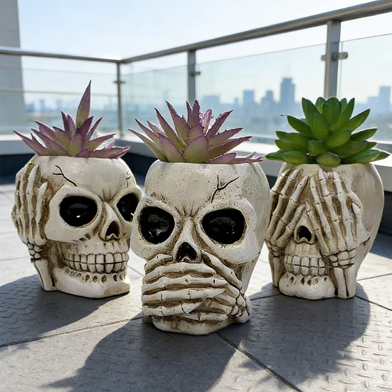 Διακοσμήσεις για το Χάλογουιν:Χρησιμοποιήστε αυτή τη γλάστρα με νεκροκεφαλή και το μπολ με γλυκά για να προσθέσετε μια μυστηριώδη και κομψή ατμόσφαιρα στο σπίτι ή τον κήπο σας. Αυτό το ρεαλιστικό σχέδιο νεκροκεφαλής, με θέμα τρόμου ή Halloween, είναι μια καταπληκτική και τρομακτική ιδέα δώρου που δημιουργήθηκε ειδικά για τους λάτρεις του Halloween, τους κηπουρούς ή τους συλλέκτες διακοσμητικών τρόμου. Αυτό το μπολ με νεκροκεφαλή είναι μια ιδανική επιλογή για δώρο, συνδυάζοντας την πρακτικότητα με το στυλ σκοτεινής τέχνης.