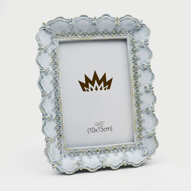 Παρέχουμε κορνίζες φωτογραφιών υψηλής ποιότητας από πολυρεζίνη με vintage μπαρόκ σχέδιο. Αυτό το μοντέλο 1758 διαθέτει χειροποίητο αντικέ μπλε και χρυσό φινίρισμα, κατάλληλο για καταστήματα λιανικής πώλησης ειδών διακόσμησης σπιτιού, καταστήματα δώρων και διανομείς ειδών γάμου. Το προϊόν συνδυάζει ανθεκτική κατασκευή από ρητίνη με πραγματική γυάλινη πρόσοψη, εξασφαλίζοντας υψηλή αντιληπτή αξία για τους τελικούς πελάτες σας.
