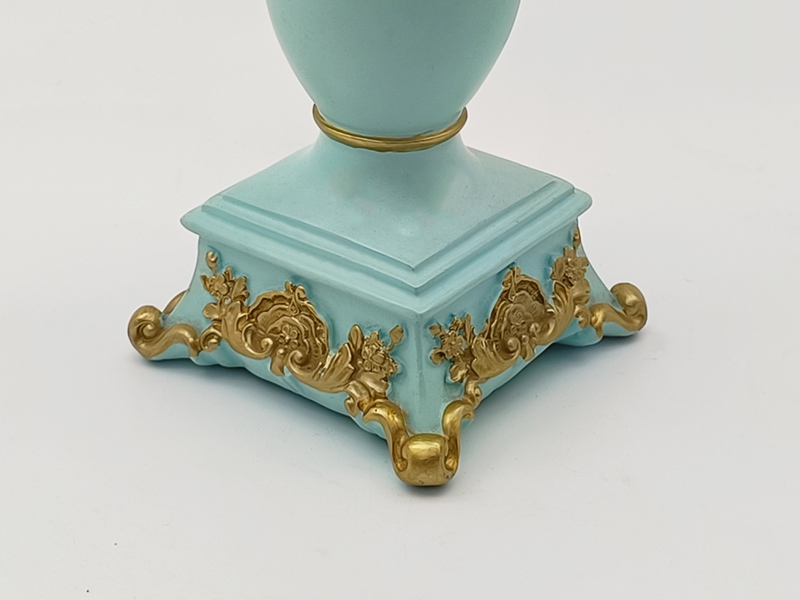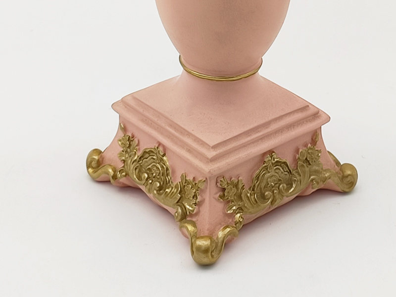 - Η βάση έχει τετράγωνο σχέδιο, με επιχρυσωμένες τρισδιάστατες ανάγλυφες διακοσμήσεις (σχέδιο ερπυστικού γρασιδιού / μοτίβο νούφαρου) στις γωνίες, ενισχύοντας τη συνολική σταθερότητα και την ρετρό υφή. Το σώμα της στήλης είναι διακοσμημένο με επιχρυσωμένες γραμμές, βελτιώνοντας τη λεπτομέρεια.