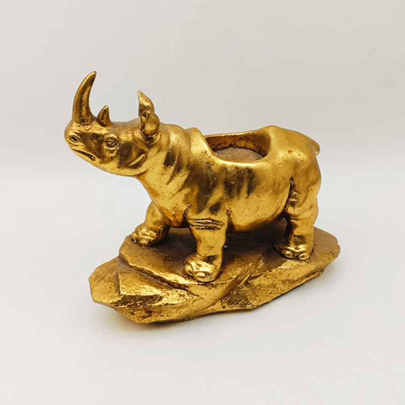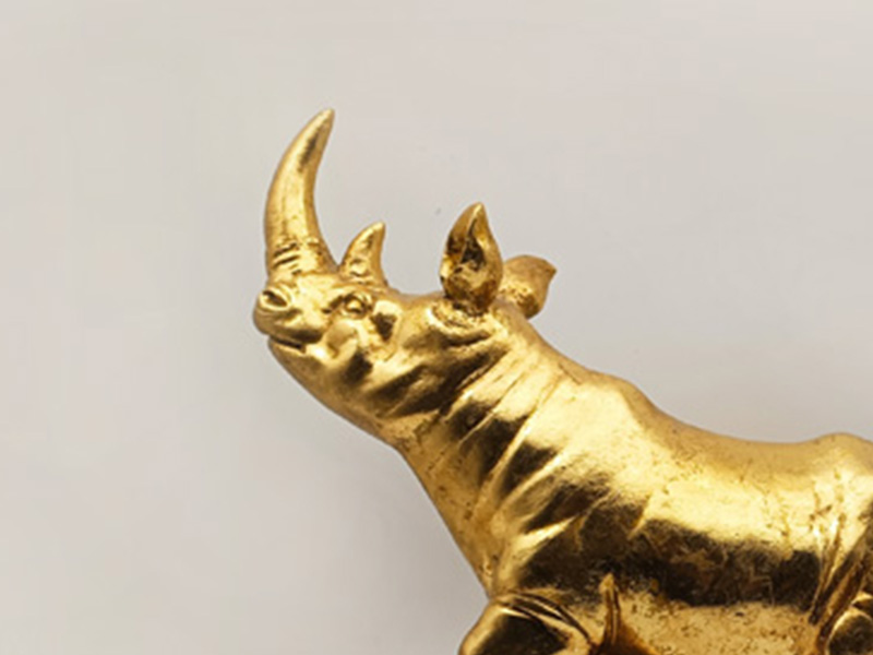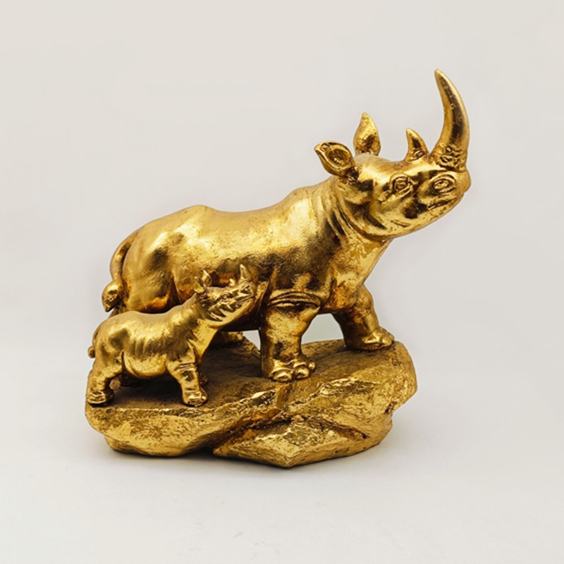 The main part is made of resin, a highly malleable material that can precisely shape the strong muscle lines, rough skin texture and sharpness of the rhinoceros horn of the rhinoceros. Ancient gold: It has an aged effect,