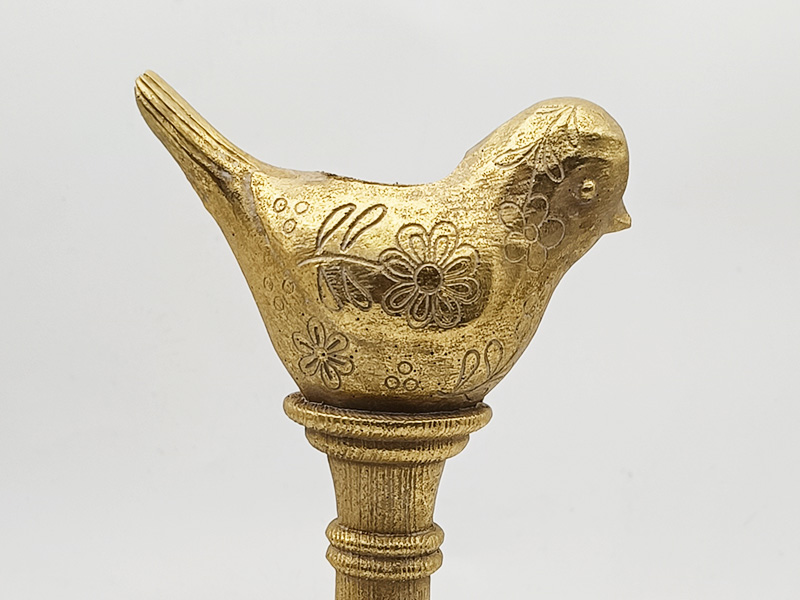 Κύριος σχεδιασμός: Η κορυφή του κηροπήγιου διαθέτει τρισδιάστατο σχήμα πουλιού. Το σώμα του πουλιού έχει στρογγυλή και αεροδυναμική μορφή, με το κεφάλι ελαφρώς κεκλιμένο, το ράμφος μικρό και την ουρά καμπυλωμένη προς τα πάνω, παρουσιάζοντας μια ζωντανή εμφάνιση. Από κάτω, το πουλί συνδέεται με το κλασικό στήριγμα σε στυλ κολόνας. Το σώμα της κολόνας είναι σχεδιασμένο σε στρώσεις, με ένα ευθύγραμμο τμήμα κολόνας στη μέση και μια βάση σε σχήμα λωτού με χαρακτικά που μοιάζουν με πέταλα στο κάτω μέρος. Οι συνολικές γραμμές είναι κομψές, σύμφωνα με το διακοσμητικό στυλ του αμερικανικού ρετρό.