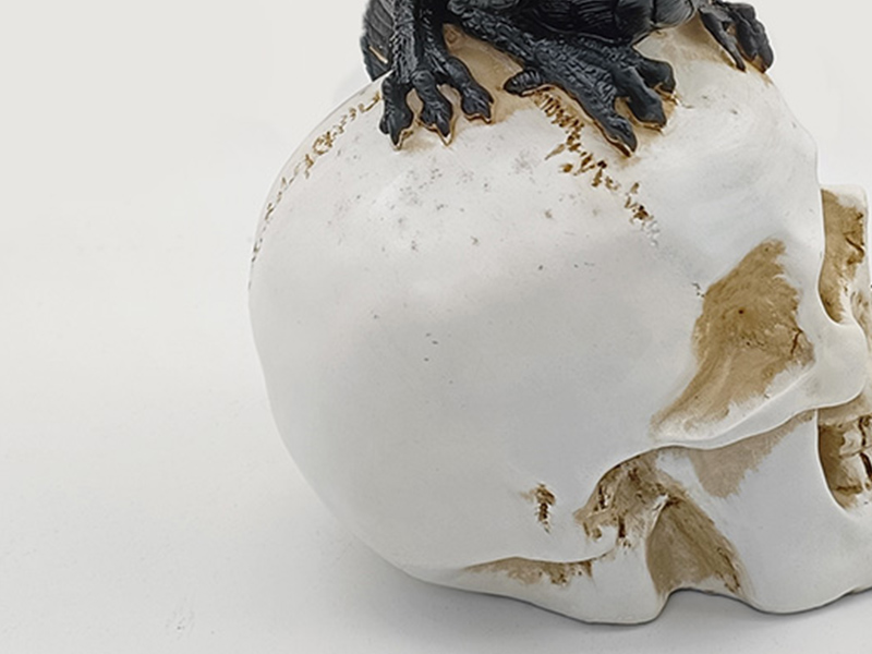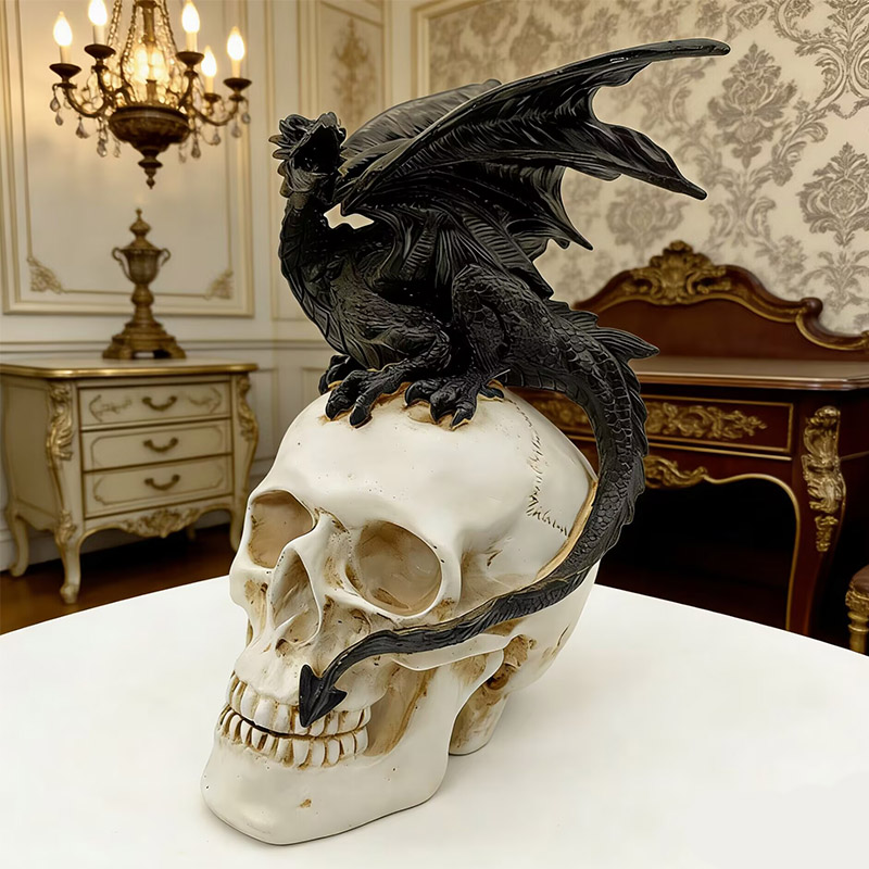 Συνολική Χειροτεχνία: Η μετάβαση μεταξύ του κρανίου και του μαύρου δράκου είναι φυσική. Το υλικό ρητίνης έχει παχιά υφή και έντονη χρωματική αντίθεση (λευκό κρανίο + μαύρος δράκος), δημιουργώντας μια μυστηριώδη και δυνατή ατμόσφαιρα φαντασίας.