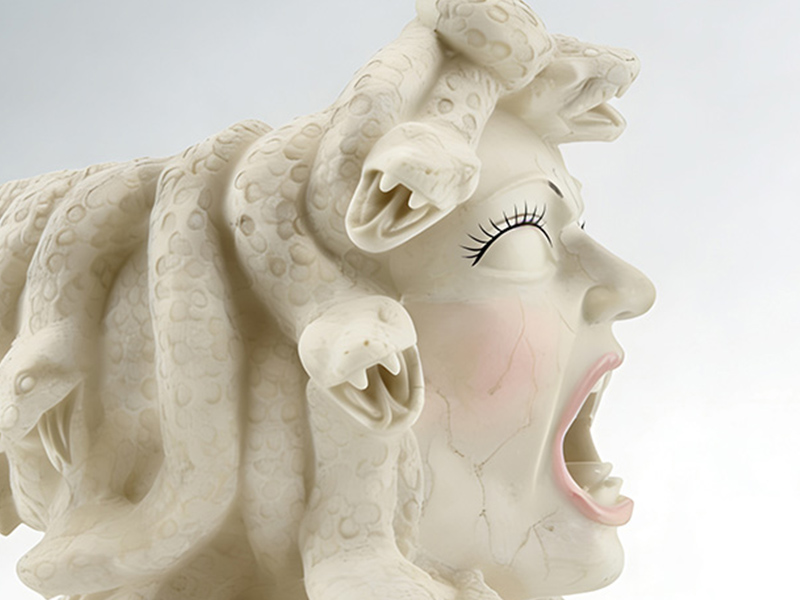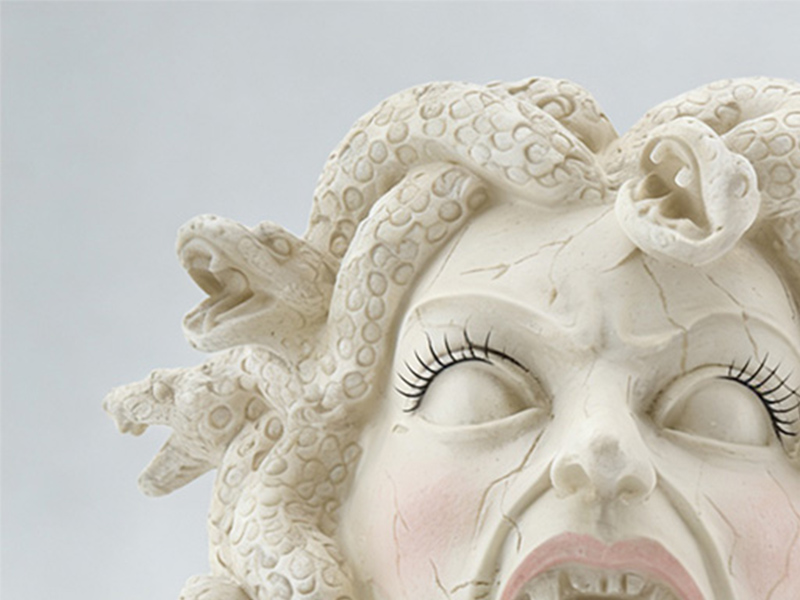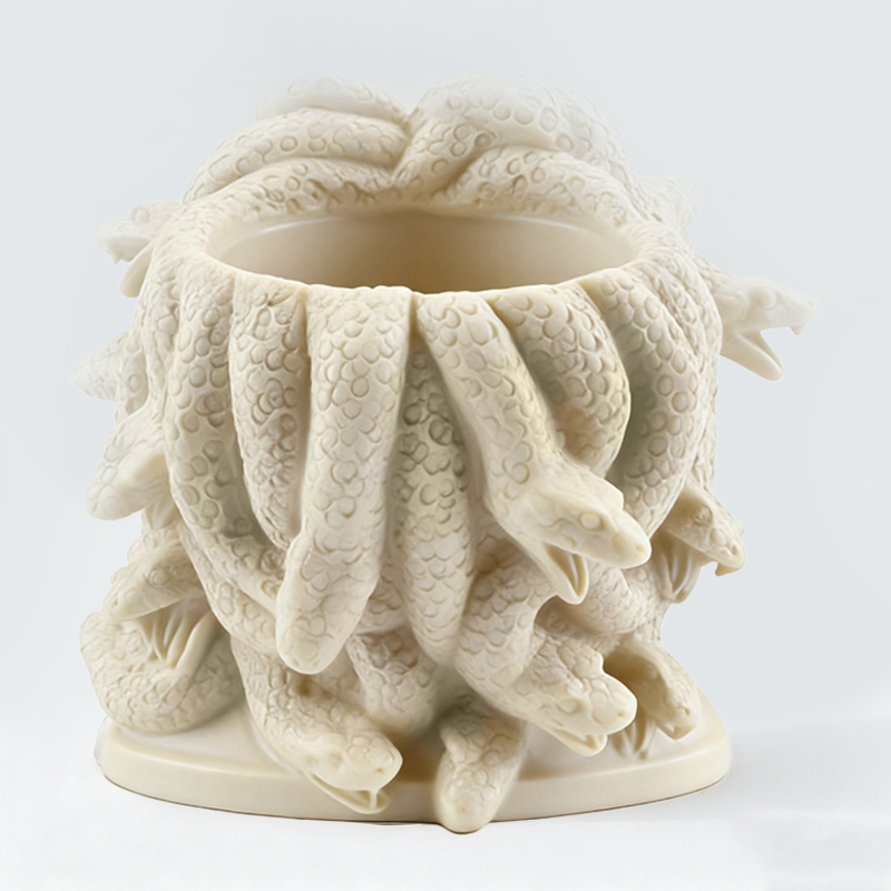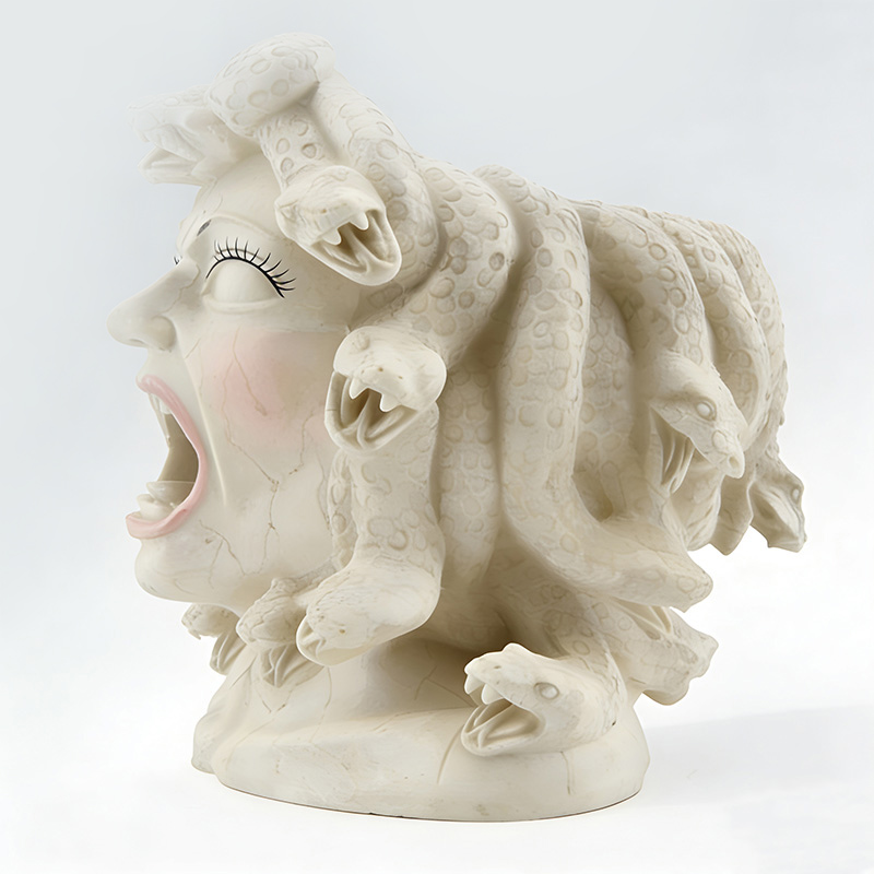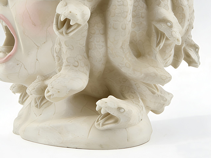 Σχεδιασμός κεφαλής: Τα μαλλιά έχουν αντικατασταθεί με μια στριφτή και κουλουριασμένη υφή που μοιάζει με φίδι. Τα λέπια και οι καμπυλωτές μορφές του σώματος του φιδιού απεικονίζονται με μεγάλη λεπτομέρεια, αποκαθιστώντας τα κλασικά χαρακτηριστικά της Μέδουσας. Σχεδιασμός κεφαλής: Τα μαλλιά έχουν αντικατασταθεί με μια στριφτή και κουλουριασμένη υφή που μοιάζει με φίδι. Η διάταξη της ομάδας των φιδιών είναι καλές αναλογίες και γεμάτη δυναμική αίσθηση. Τα λέπια και οι καμπυλωτές μορφές του σώματος του φιδιού απεικονίζονται με μεγάλη λεπτομέρεια, αποκαθιστώντας τα κλασικά χαρακτηριστικά της Μέδουσας. Η διάταξη της ομάδας των φιδιών είναι καλές αναλογίες και γεμάτη δυναμική αίσθηση.