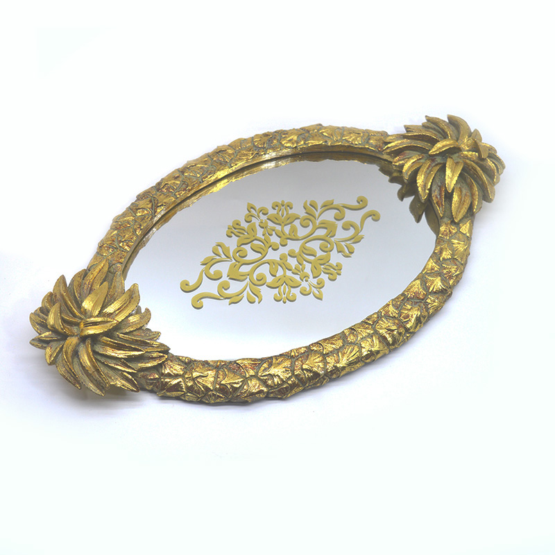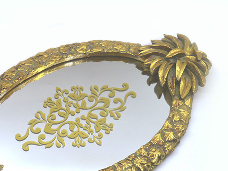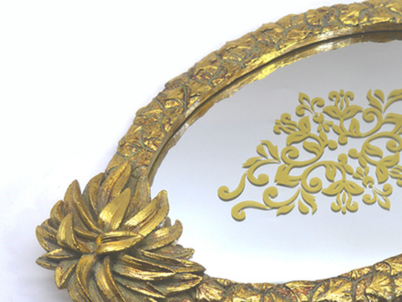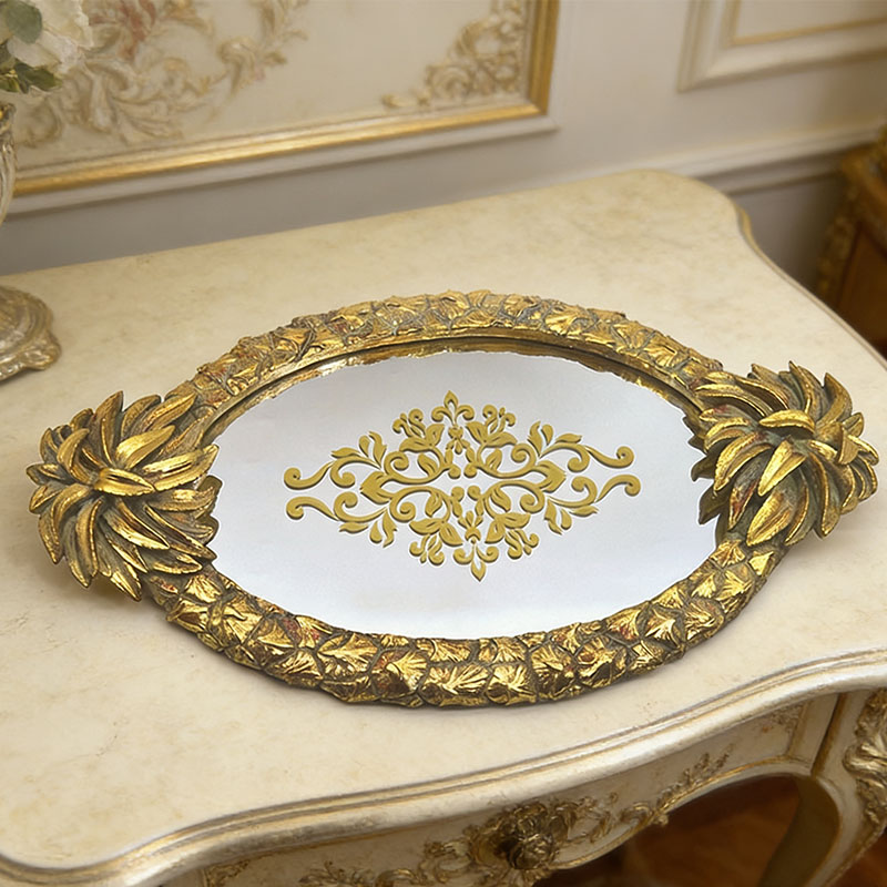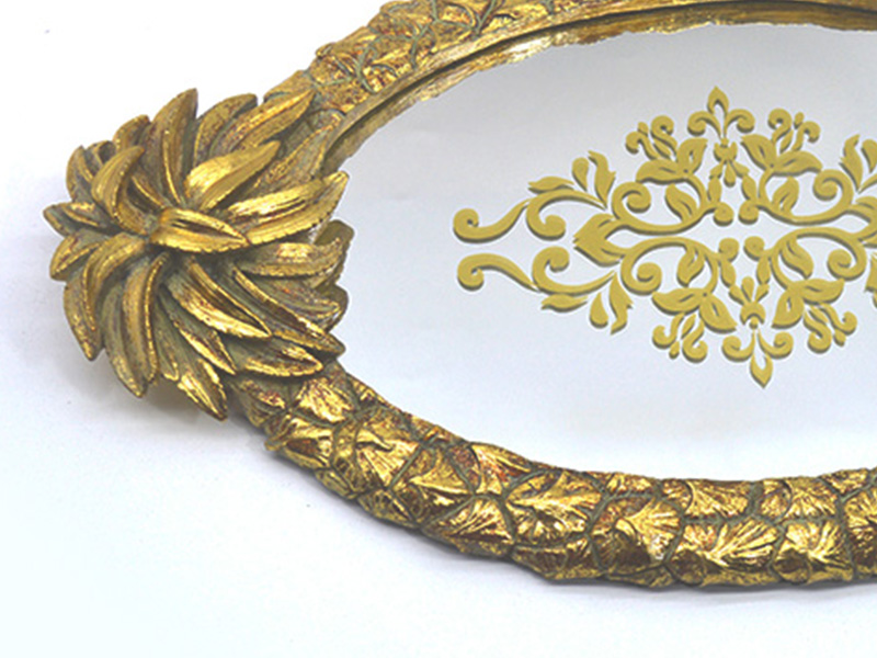 Χάραξη καθρέφτη: Ο δίσκος είναι ενσωματωμένος με έναν ασημένιο καθρέφτη υψηλής διαφάνειας. Στο κέντρο της επιφάνειας του καθρέφτη, υπάρχει ένα χαραγμένο ευρωπαϊκό μοτίβο κύλισης. Οι γραμμές του σχεδίου είναι λείες και η άκρη του καθρέφτη έχει υποστεί επεξεργασία με στεγανοποίηση γυαλιού, καθιστώντας τον λιγότερο επιρρεπή σε ρωγμές ή γρατσουνιές.