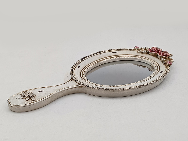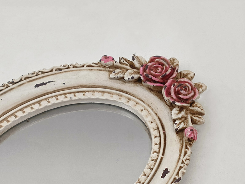 Υλικό και Χειροτεχνία: Το κύριο σώμα του καθρέφτη είναι κατασκευασμένο από ρητίνη. Η επιφάνεια είναι επικαλυμμένη με παλαιωμένο λευκό φινίρισμα και οι άκρες έχουν ένα ανοιχτό καφέ φινίρισμα, δημιουργώντας μια ρετρό και κηλιδωτή υφή.