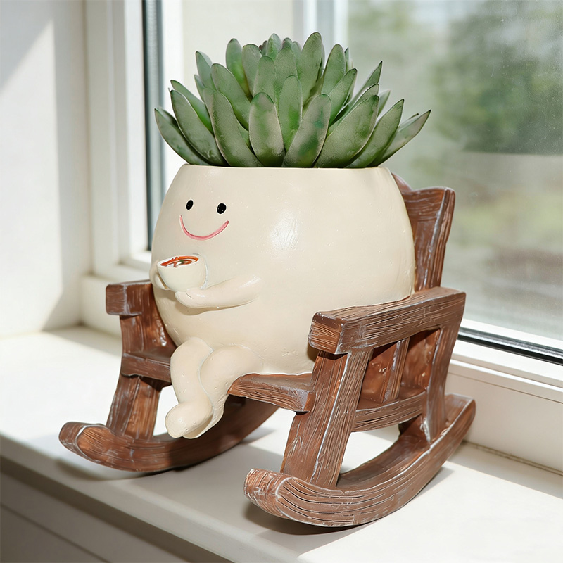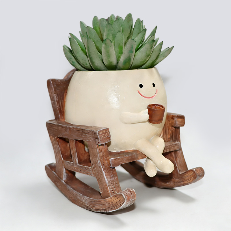 Περιγραφή: | ♥Φιλική προς το περιβάλλον ρητίνη (αδιάβροχη, ανθεκτική στους κραδασμούς και δεν ξεθωριάζει) ♥ Λευκή και μπεζ γλάστρα + σκούρα καφέ κουνιστή πολυθρόνα (ζωγραφισμένη στο χέρι, η μικρή διαφορά χρώματος είναι φυσιολογική) ♥ Το χαμογελαστό πρόσωπο με κινούμενα σχέδια σε συνδυασμό με το σχέδιο της κουνιστής καρέκλας, τη χαλαρή στάση που κρατάει ένα φλιτζάνι καφέ, αποπνέει μια αίσθηση άνεσης. Η κουνιστή καρέκλα μπορεί να δονείται ελαφρώς. |